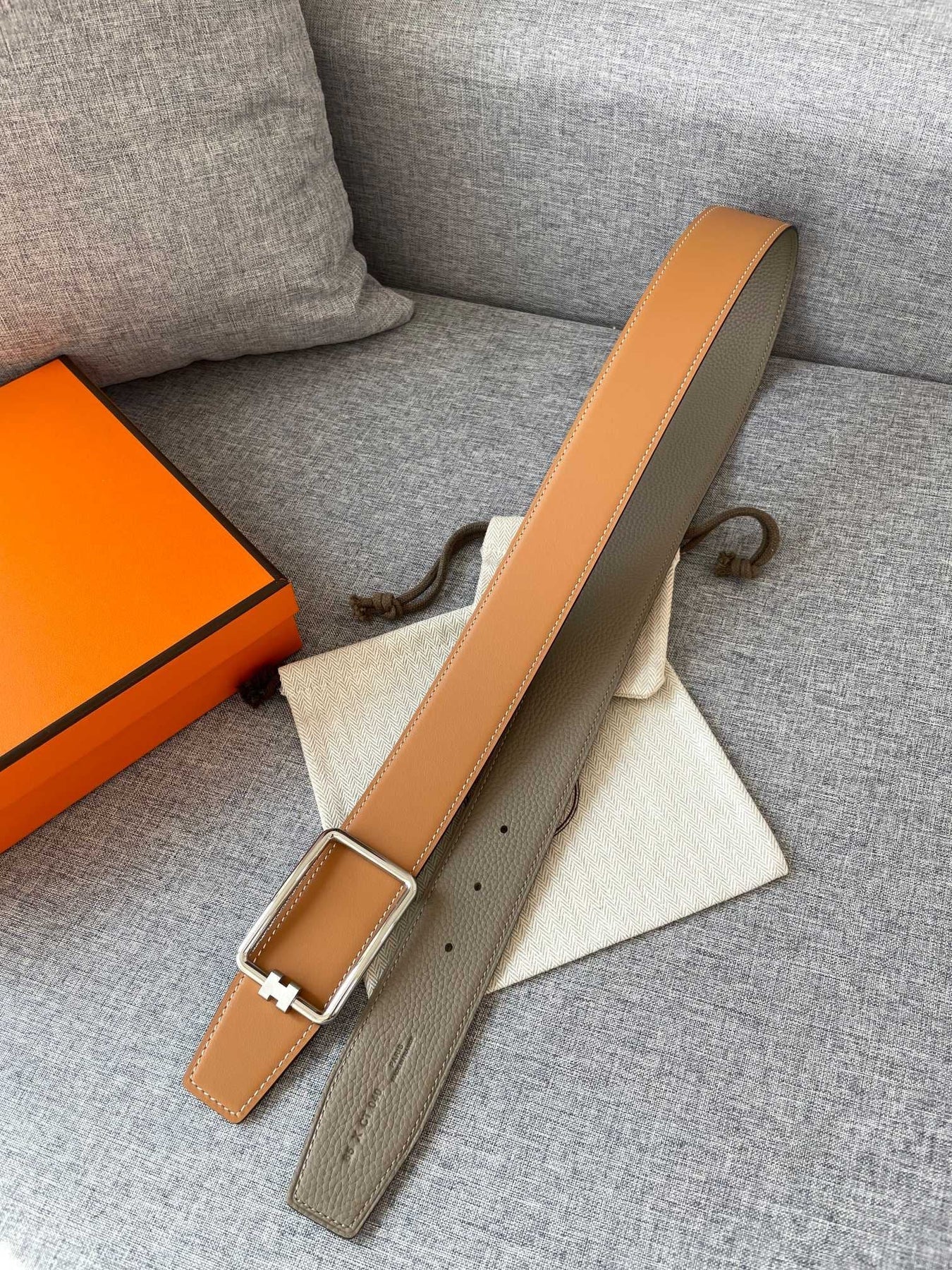 H TUBE BELT 38MM SILVER BUCKLE TIN GREY GOLD LEATHER