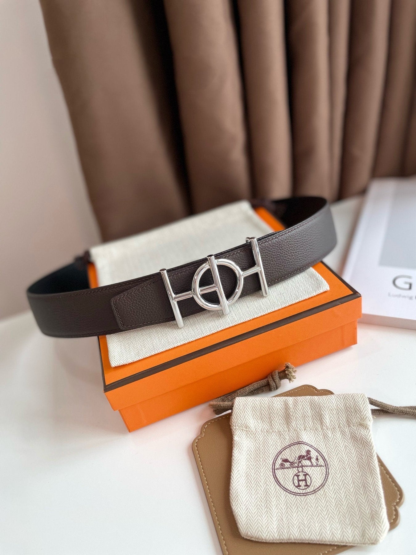 H ULYSSE BELT 38MM SILVER BUCKLE BLACK CHOCOLATE LEATHER