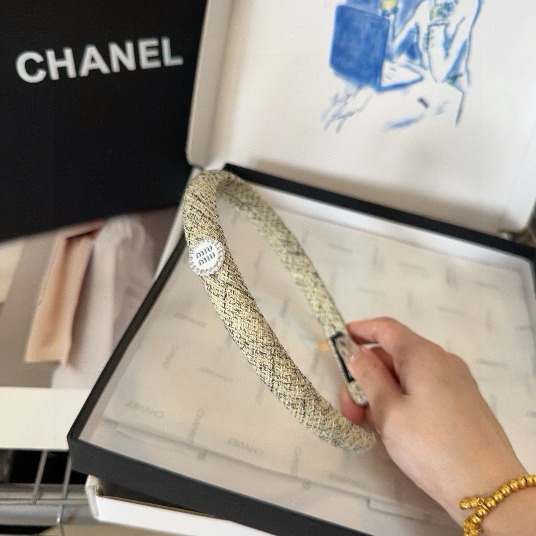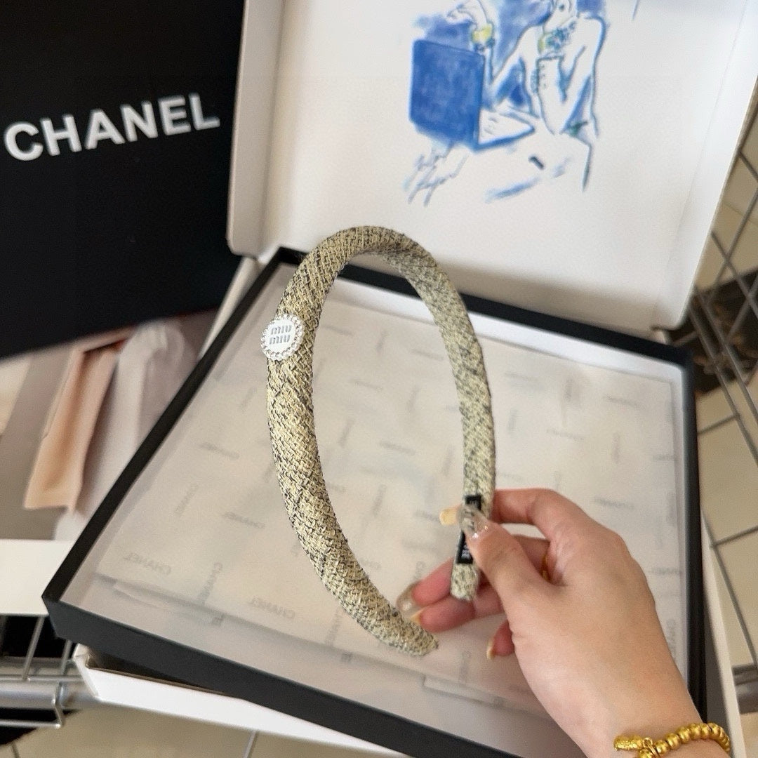 HEADBAND IN CREAM MIX LITTLE BLACK TWEED CRYSTALS LOGO 407887