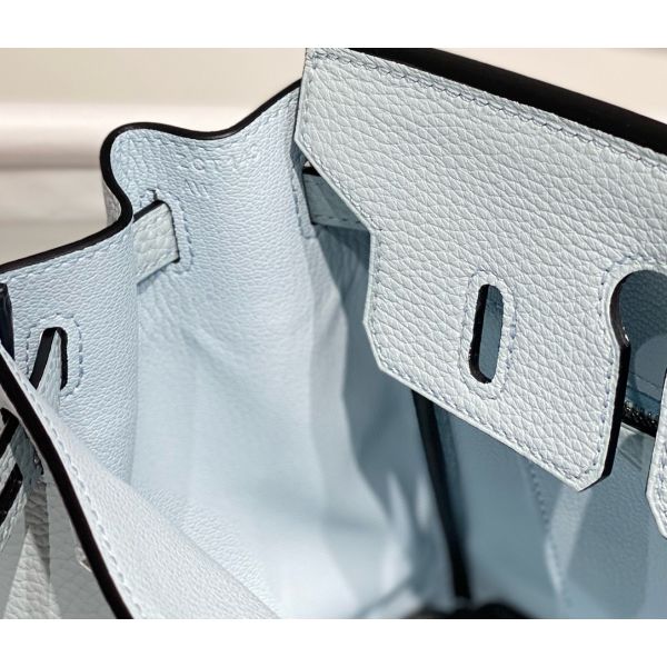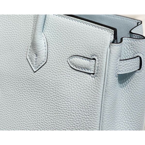 HERM Birkin 25cm Bag In Blue Brume Clemence Leather PHW