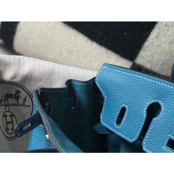 HERM Birkin 25cm Bag In Blue Jean Clemence Leather GHW