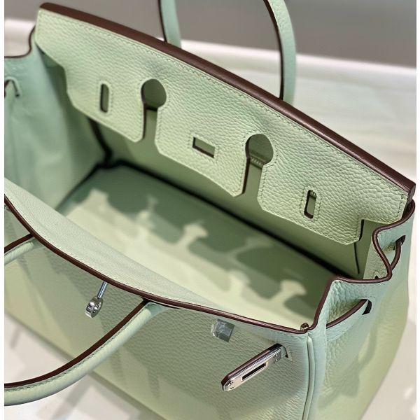HERM Birkin 25cm Bag In Vert Fizz Clemence Leather PHW