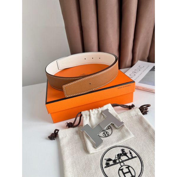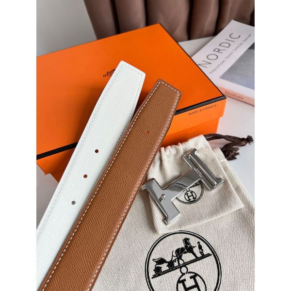 HERM Constance Reversible Belt 38MM in Gold and White Epsom Calfskin