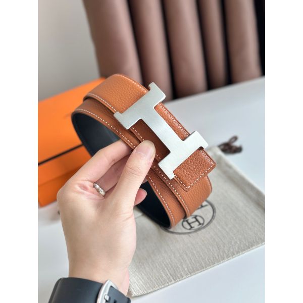 HERM Constance Reversible Belt 38MM in Gold Clemence Leather