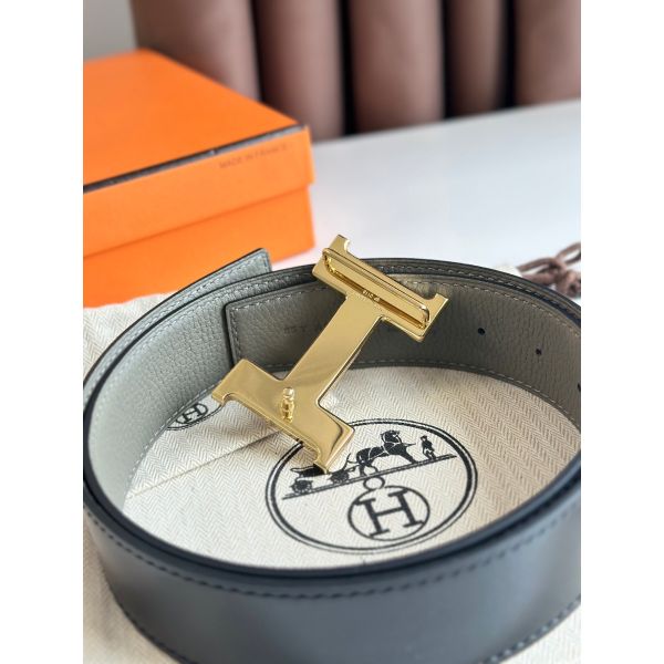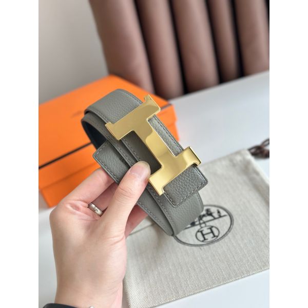 HERM Constance Reversible Belt 38MM in Grey Clemence Leather