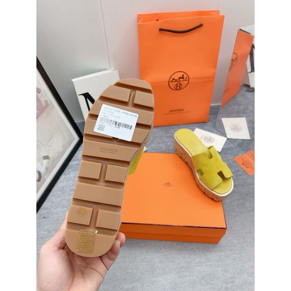 HERM Eze 30 Cork Platform Sandals in Yellow Suede Leather