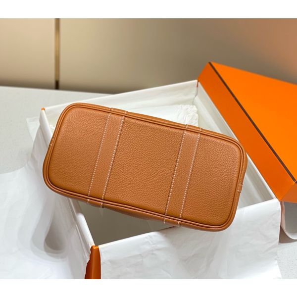 HERM Garden Party 30cm Bag in Toile and Gold Leather