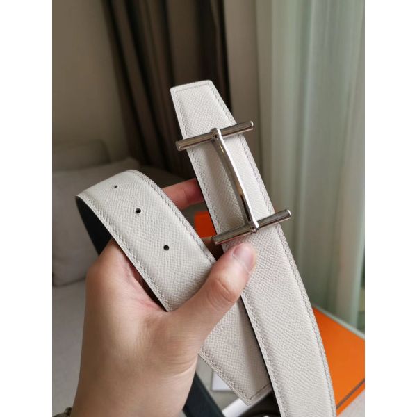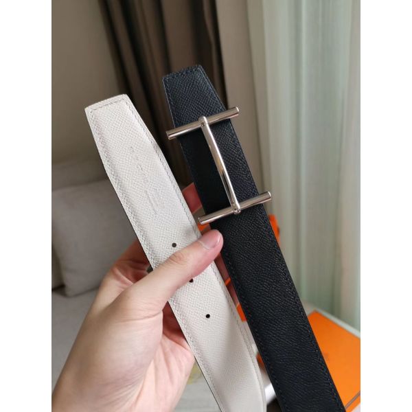 HERM H d'Ancre Reversible Belt In Black/White Epsom Leather