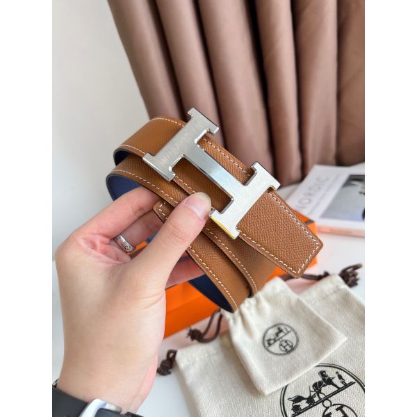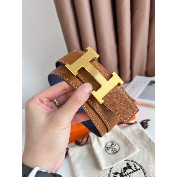 HERM H Reversible Belt 38MM in Blue and Gold Epsom Leather