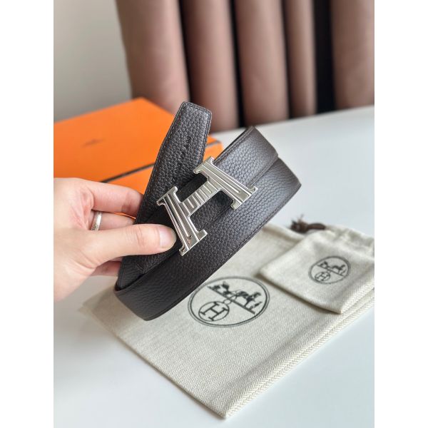 HERM H Take Off Reversible Belt 32MM in Chocolate Clemence Leather