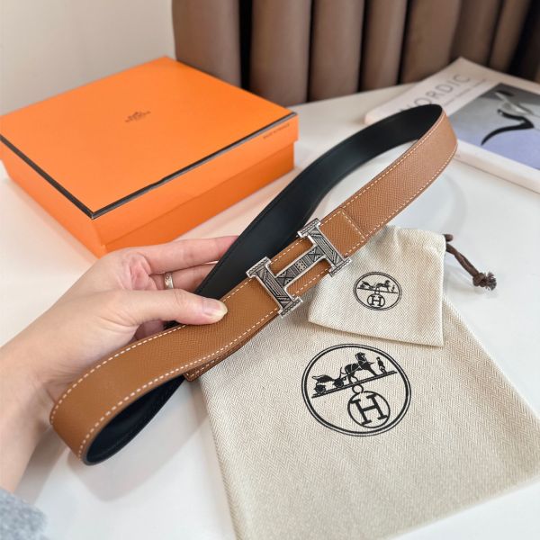 HERM H Touareg Reversible Belt 32MM in Gold Epsom Leather