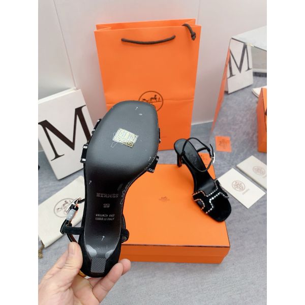 HERM Heden 80 Sandals in Black Suede Leather with Rhinestone