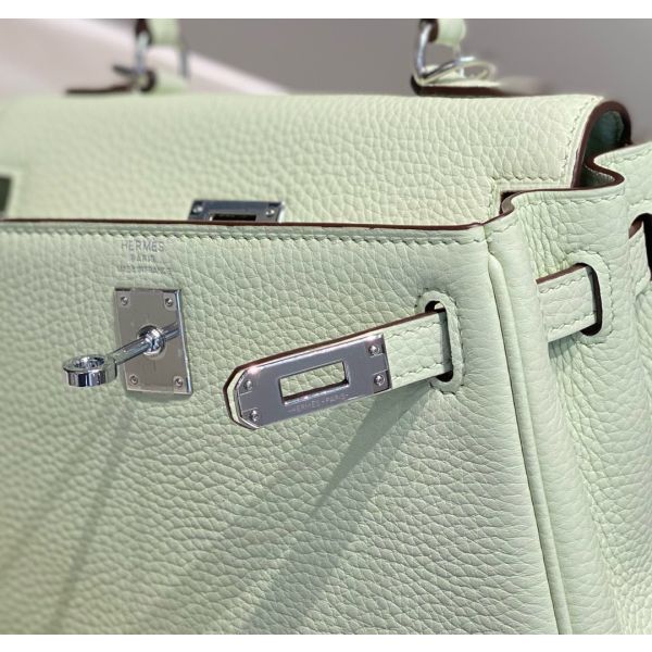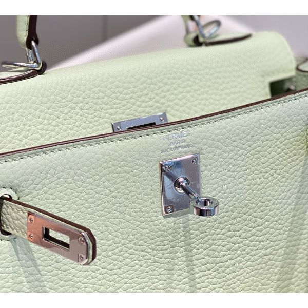 HERM Kelly 20cm Bag In Vert Fizz Clemence Leather PHW
