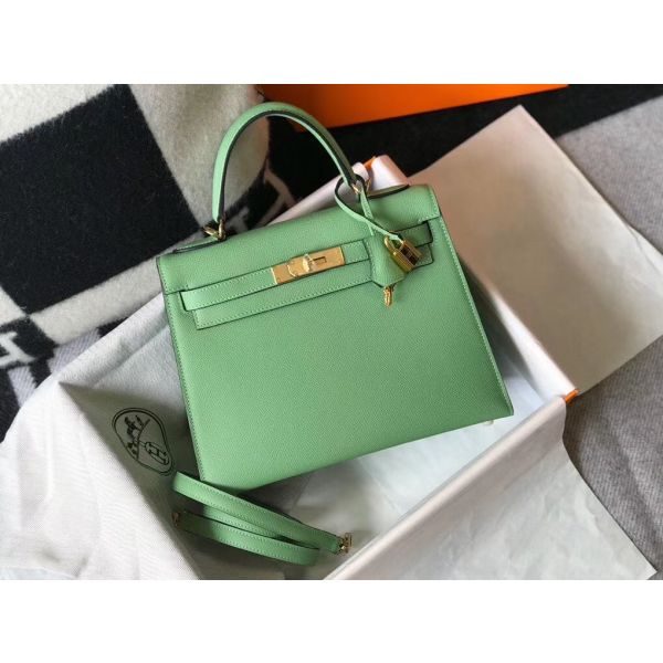 HERM Kelly 25cm Sellier Bag In Vert Criquet Epsom Leather
