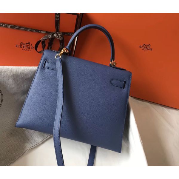 HERM Kelly 28cm Bag In Blue Agate Epsom Leather GHW