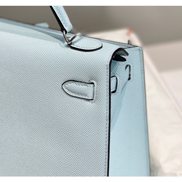 HERM Kelly 28cm Bag In Blue Brume Epsom Leather PHW