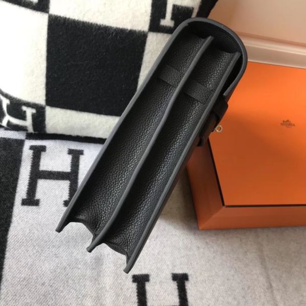 HERM Kelly Depeche 38 Briefcase In Black Calfskin