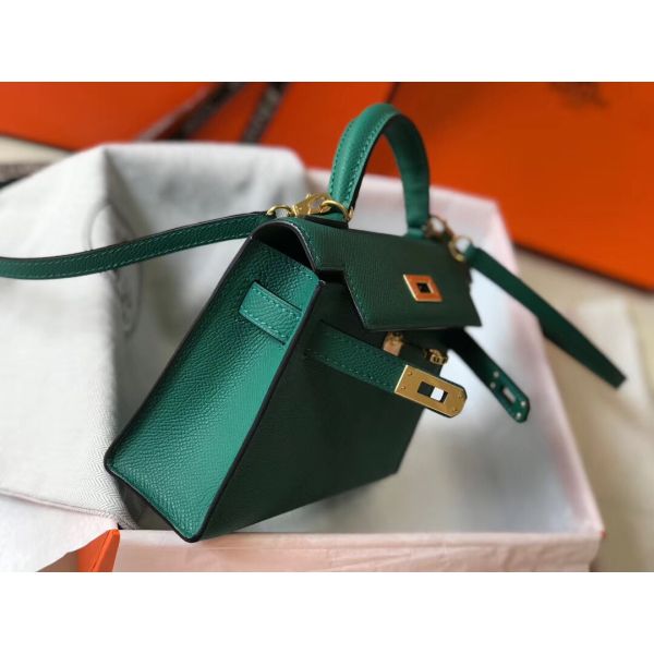 HERM Kelly Mini II Bag In Vert Vertigo Epsom Leather GHW