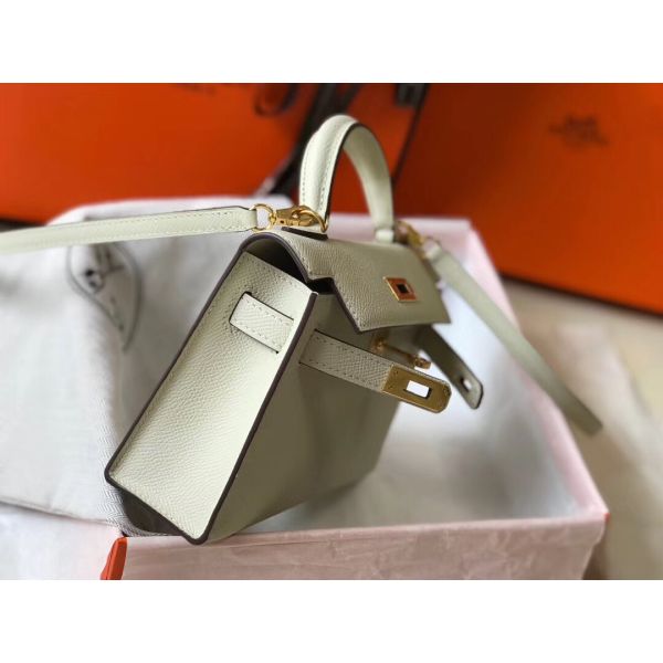 HERM Kelly Mini II Bag In White Epsom Leather GHW