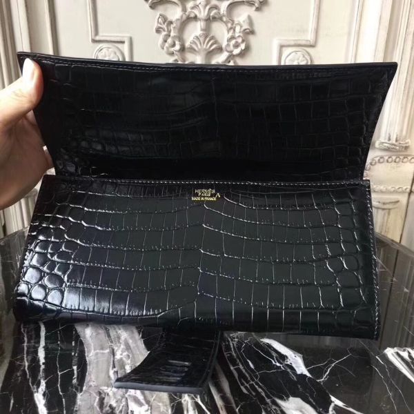 HERM Medor Clutch Bag In Black Crocodile Leather