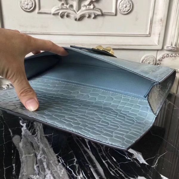HERM Medor Clutch Bag In Ciel Crocodile Leather