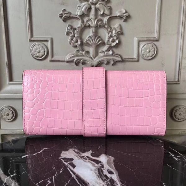 HERM Medor Clutch Bag In Pink Crocodile Leather