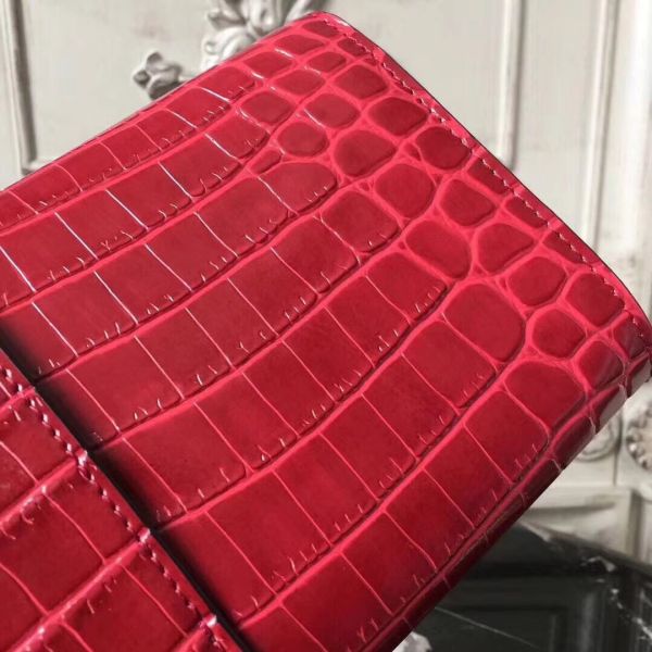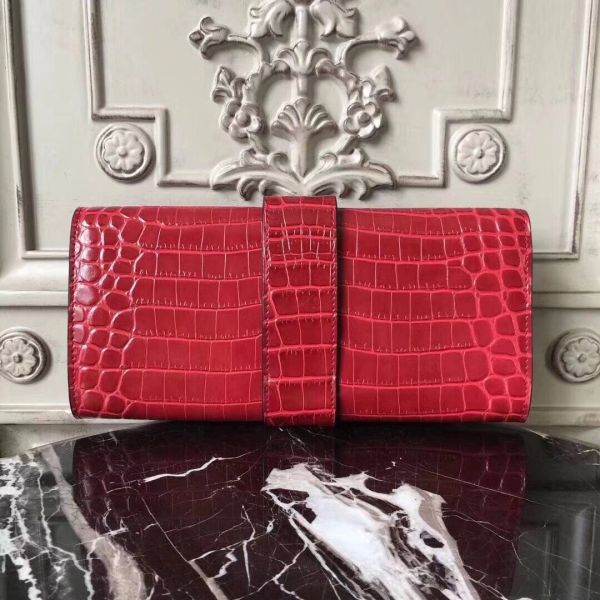 HERM Medor Clutch Bag In Red Crocodile Leather