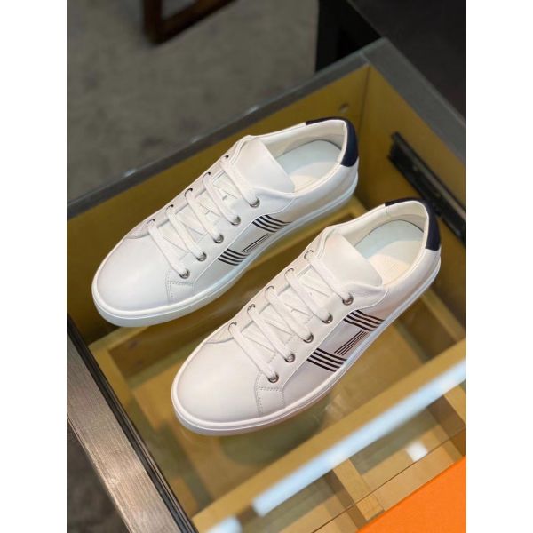 HERM Men's Avantage Sneakers In White/Blue Calfskin