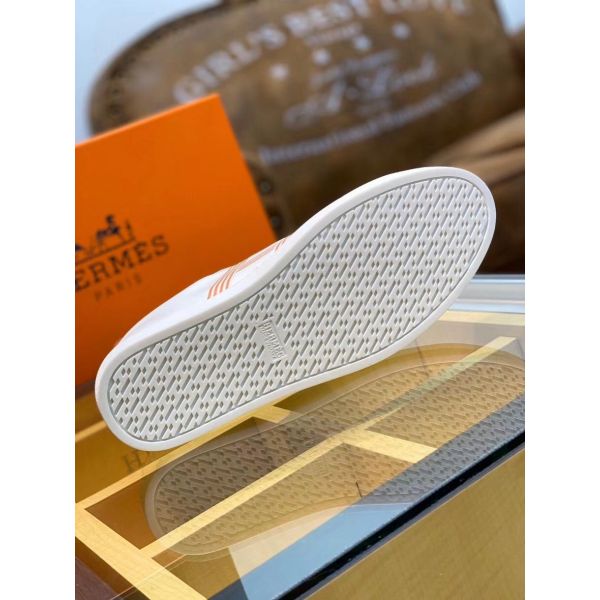 HERM Men's Avantage Sneakers In White/Orange Calfskin