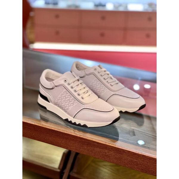 HERM Men's C-Addict Sneakers In White Perforated Calfskin