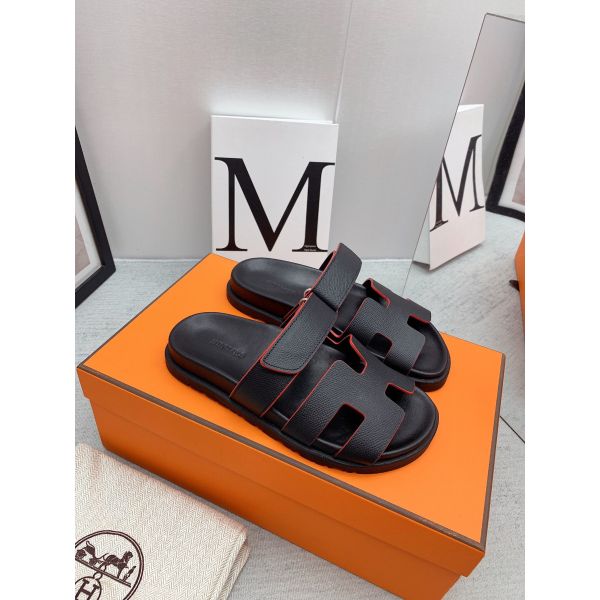 HERM Men's Chypre Sandals in Black Epsom Calfskin