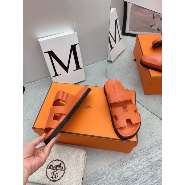 HERM Men's Chypre Sandals in Orange Epsom Calfskin