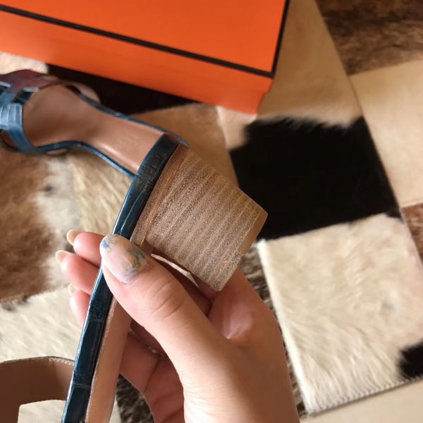 HERM Oasis Sandals In Blue Shiny Niloticus Crocodile