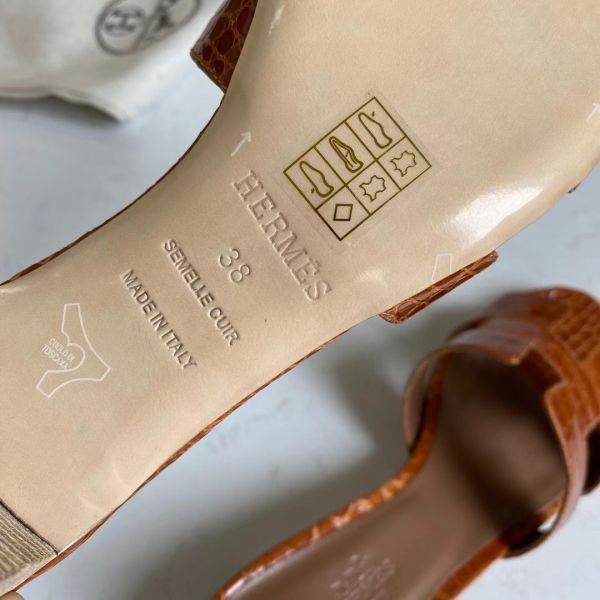 HERM Oasis Sandals In Brown Shiny Niloticus Crocodile