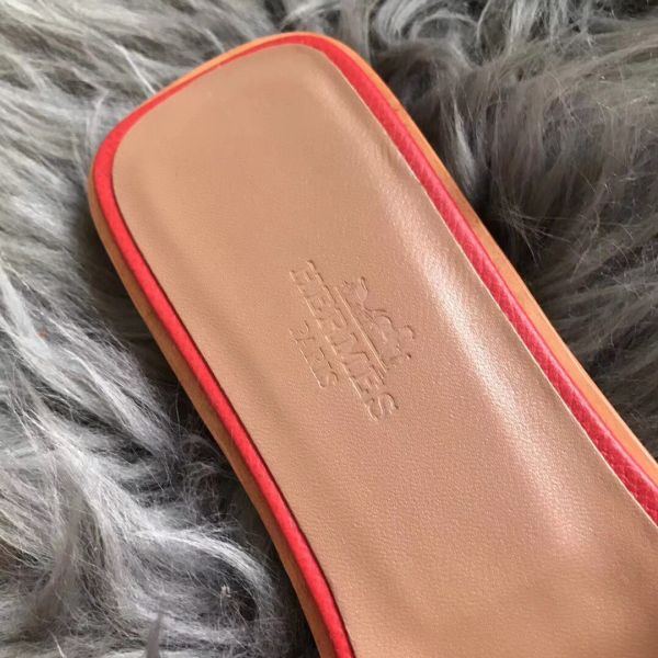 HERM Oran Perforated Sandals In Red Epsom Leather