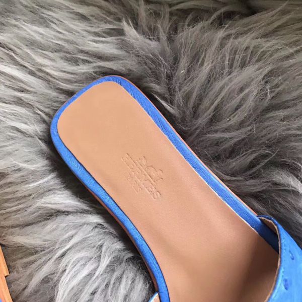 HERM Oran Sandals In Blue Hydra Ostrich Leather