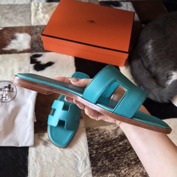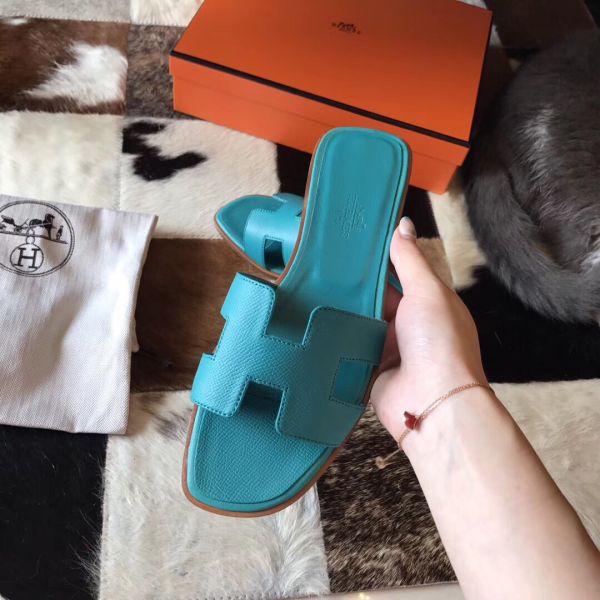 HERM Oran Sandals In Blue Paon Epsom Leather