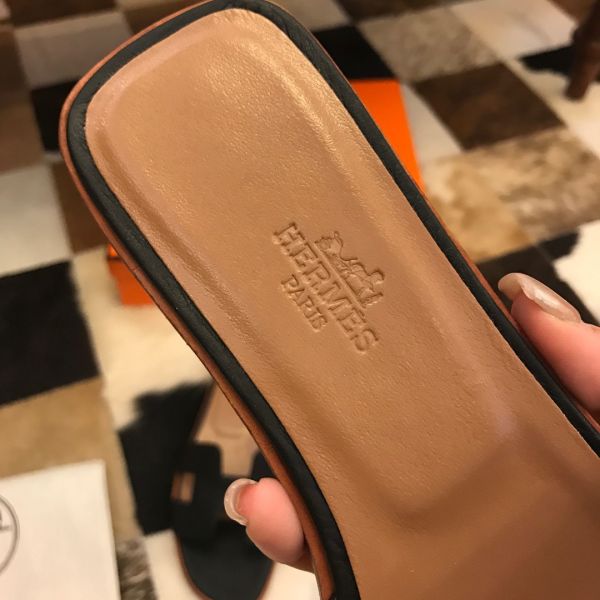HERM Oran Slide Sandals In Black Clemence Leather