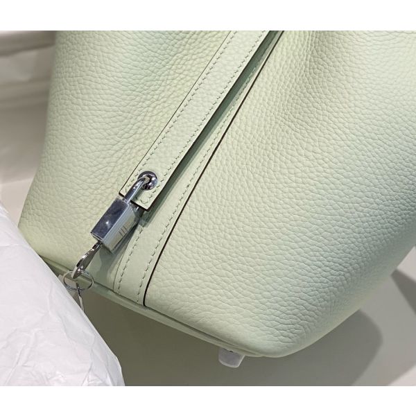 HERM Picotin Lock 18 Bag In Vert Fizz Clemence Leather