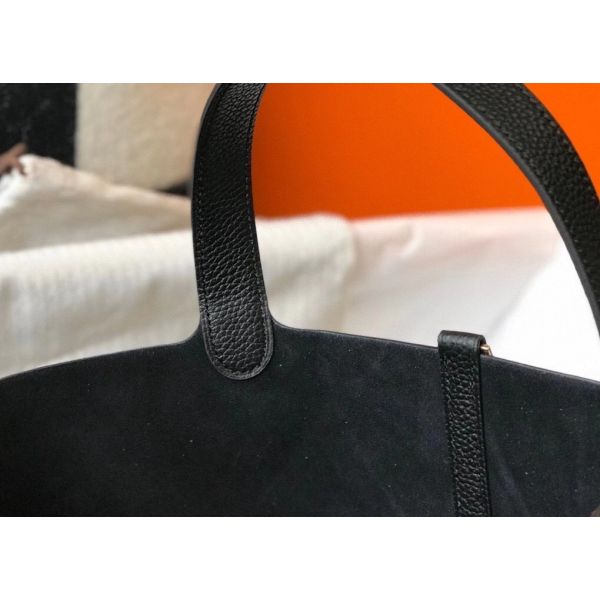 HERM Picotin Lock 22 Bag In Black Clemence Leather