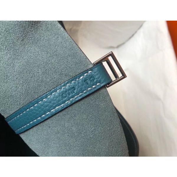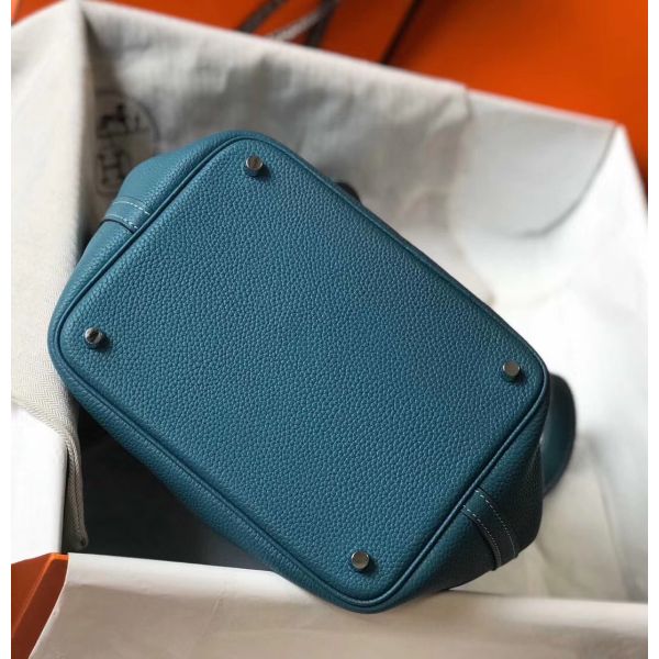 HERM Picotin Lock 22 Bag In Blue Jean Clemence Leather