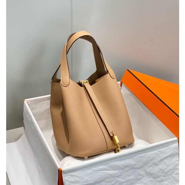 HERM Picotin Lock 22 Bag In Chai Clemence Leather