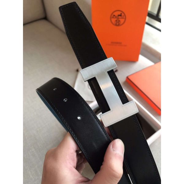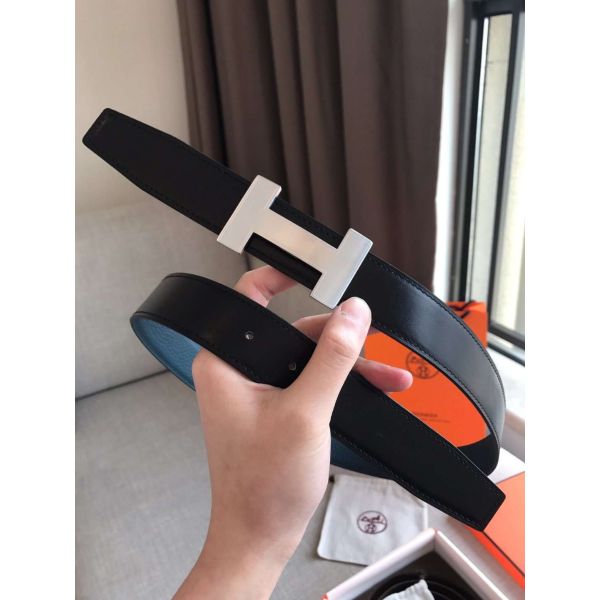 HERM Quizz 32mm Reversible Belt In Blue Clemence Leather