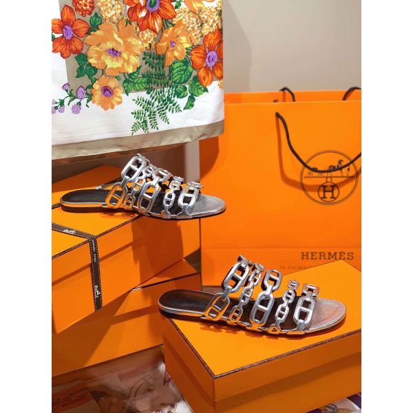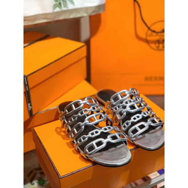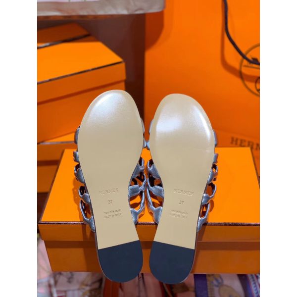 HERM Thalassa Sandals In Silver Metallic Calfskin