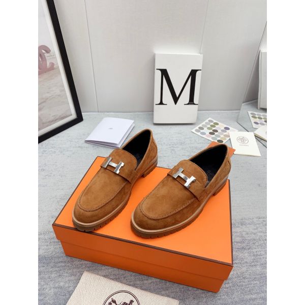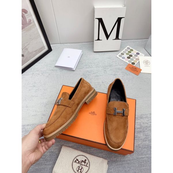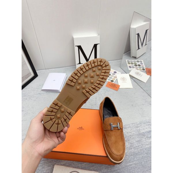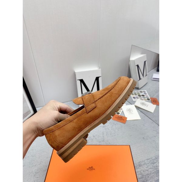 HERM Women's Faubourg Loafers in Brown Suede Leather