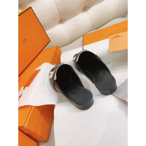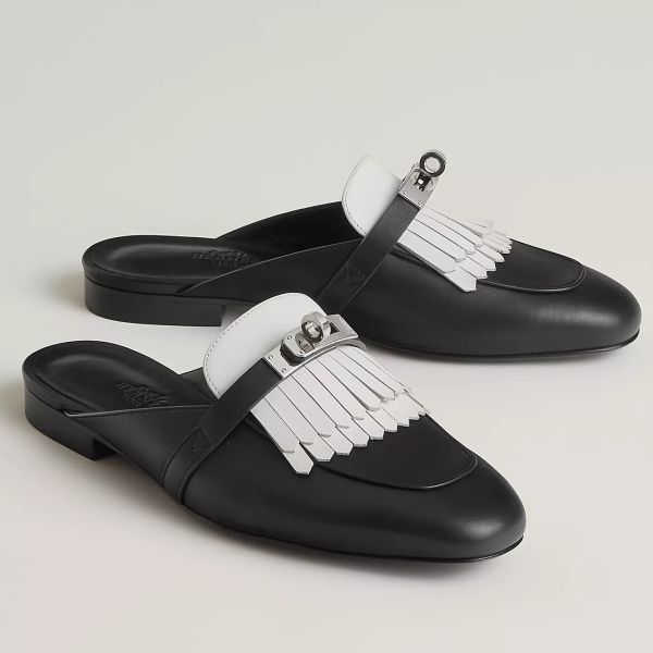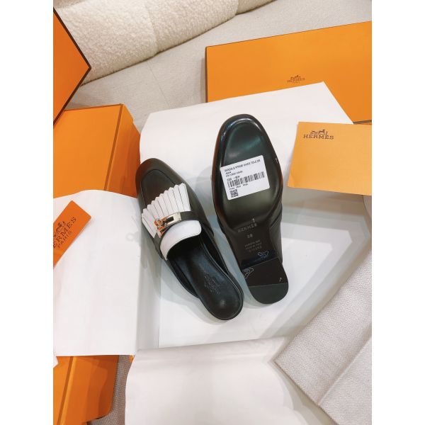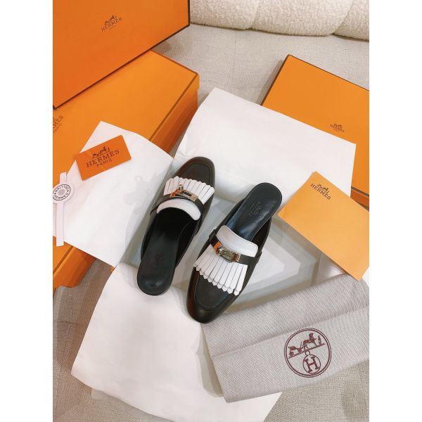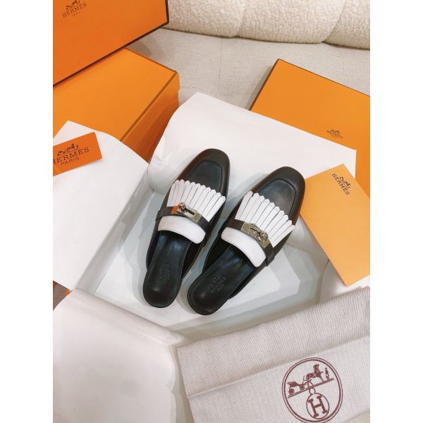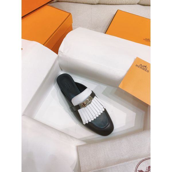 HERM Women's Oz Mules with Fringed in Black/White Leather