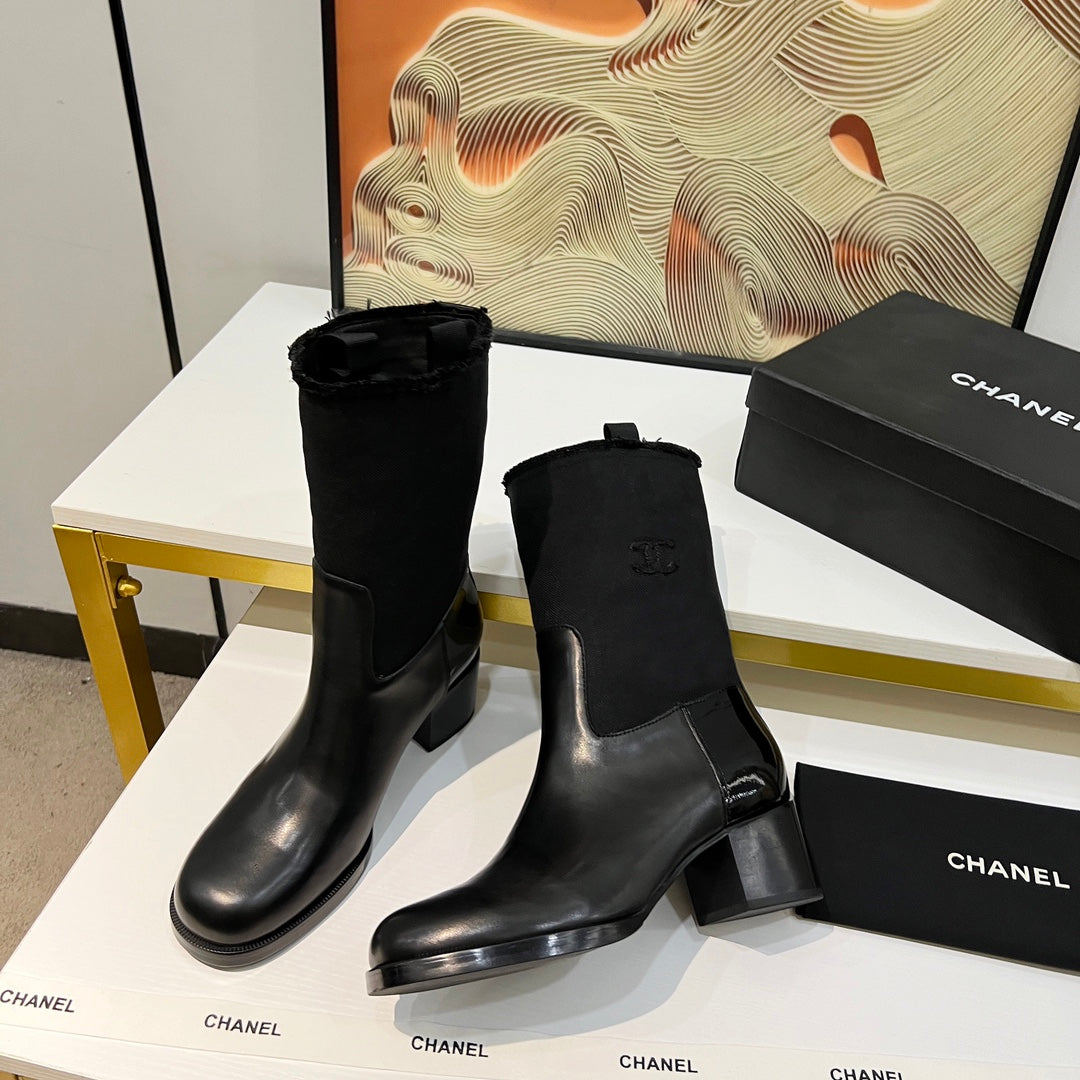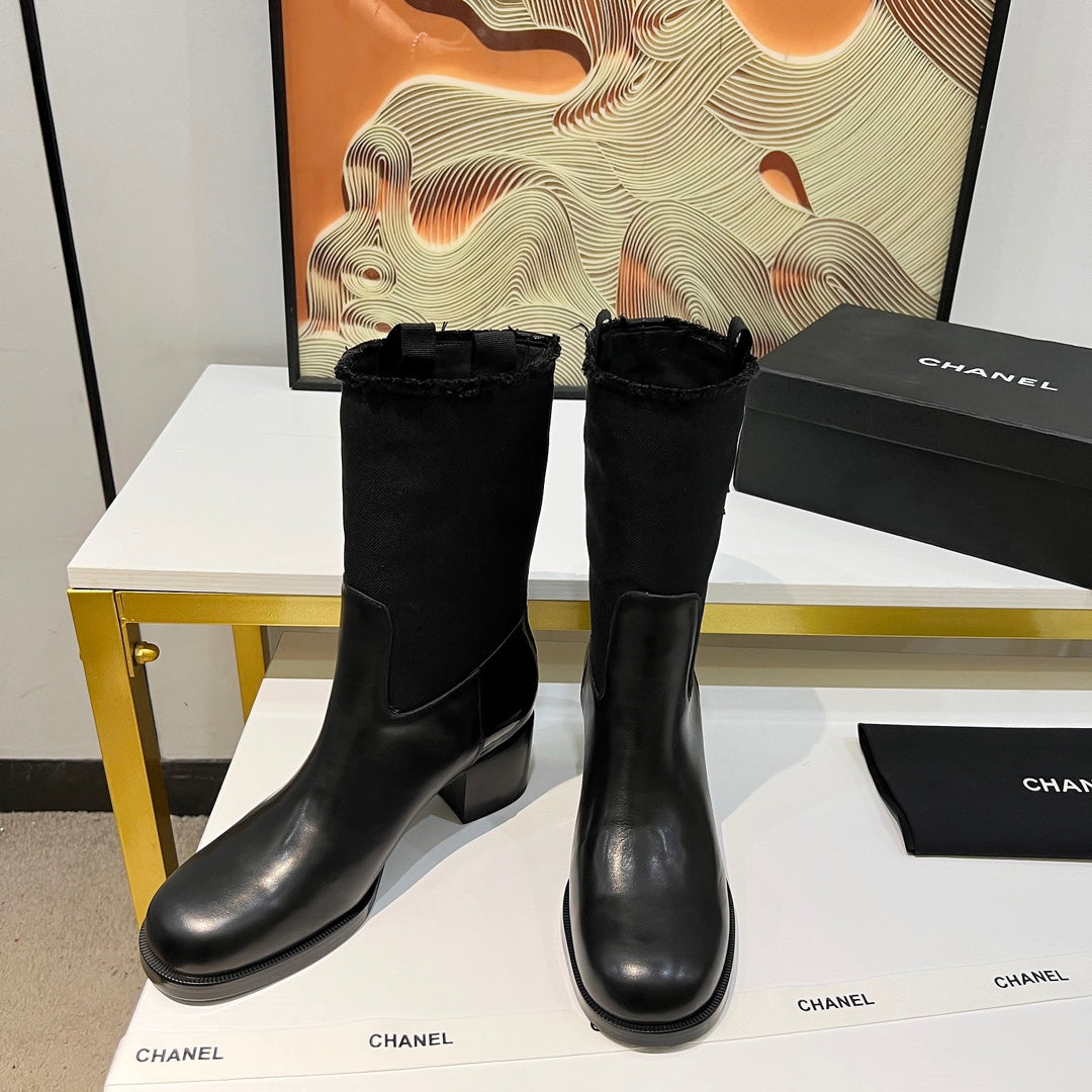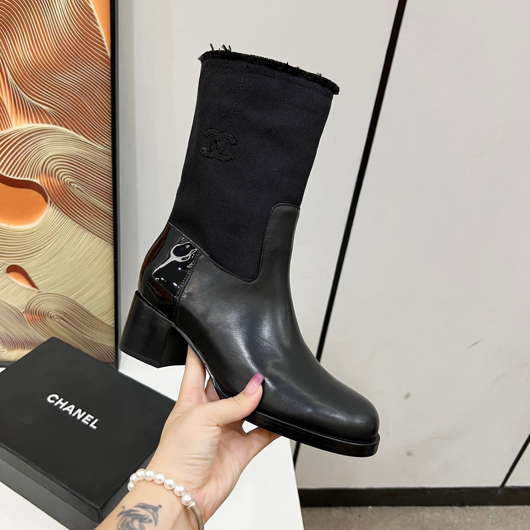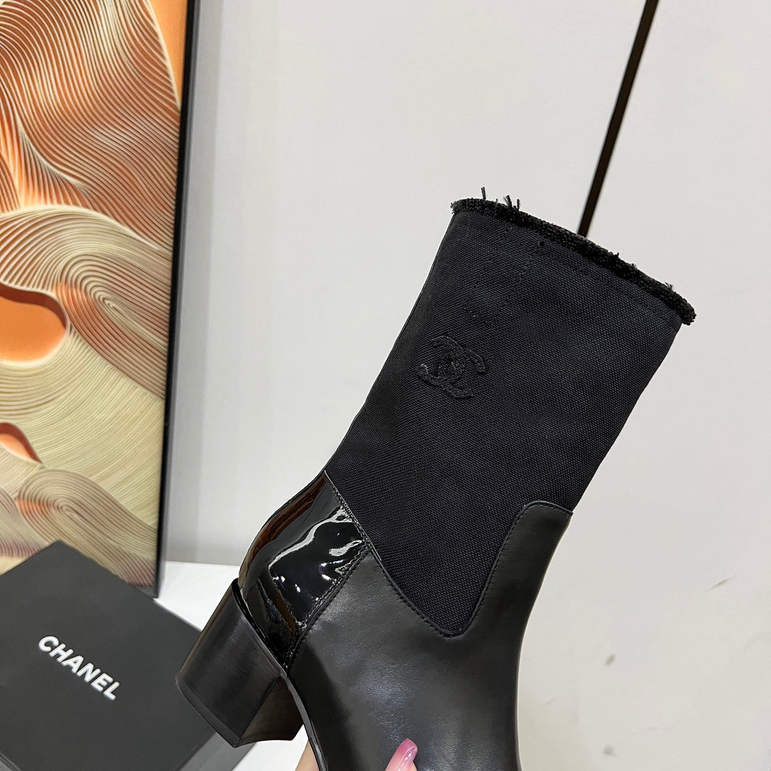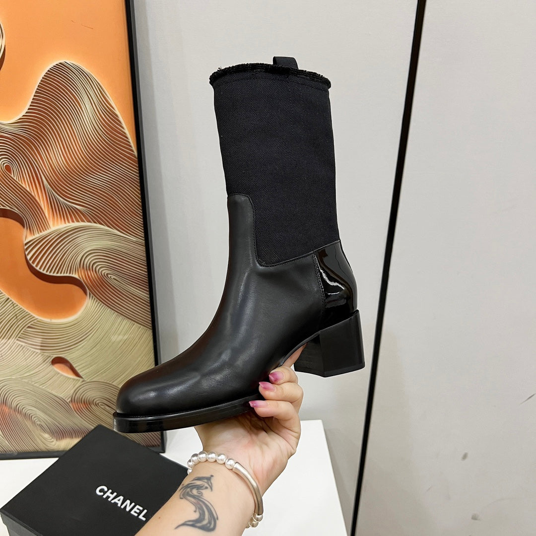 HIGH BOOTS 5.5 CM IN BLACK LAMBSKIN AND FABRIC