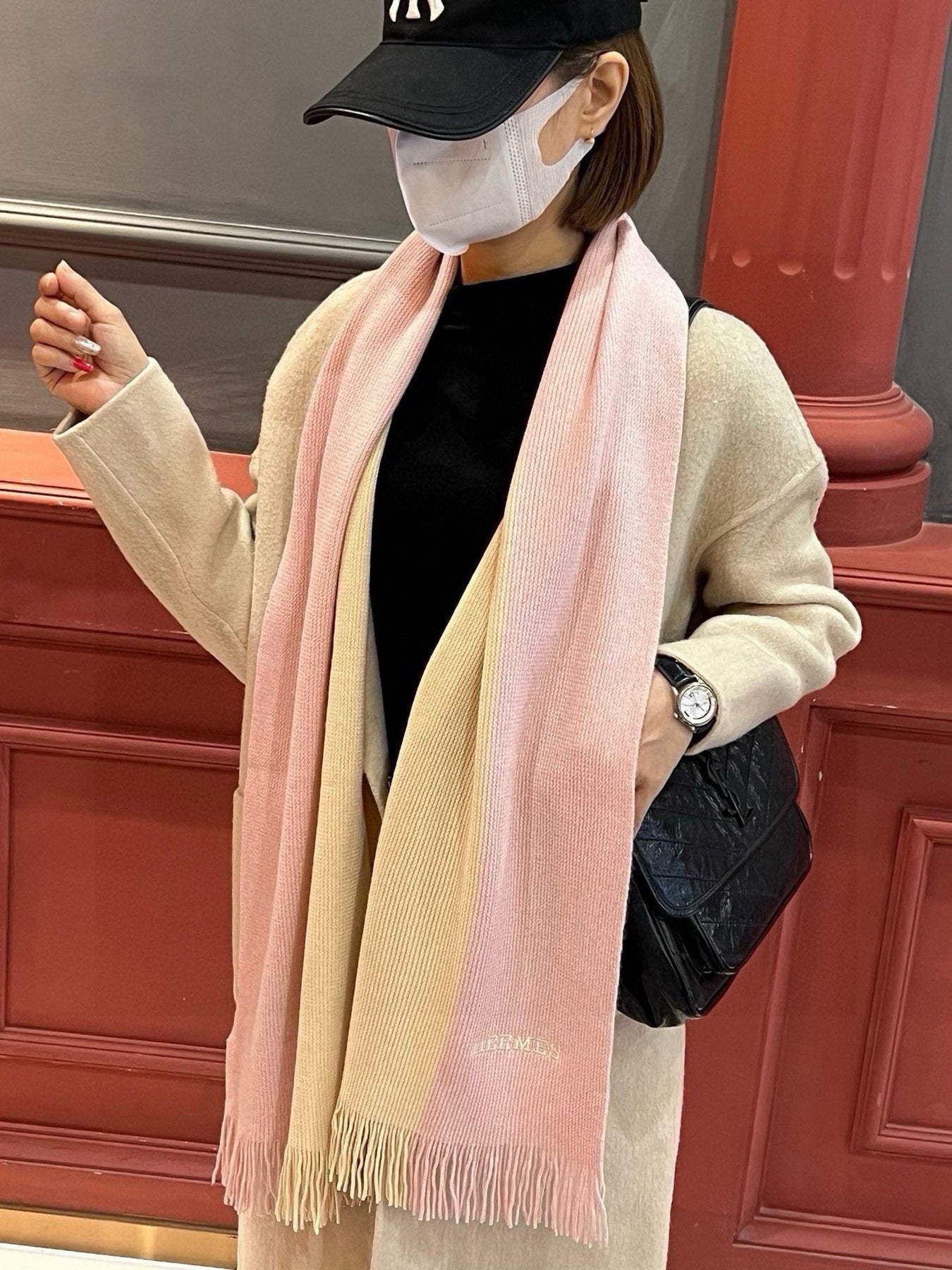 HIGH-END SCARF 180 IN LIGHT PINK MIX BEIGE CASHMERE