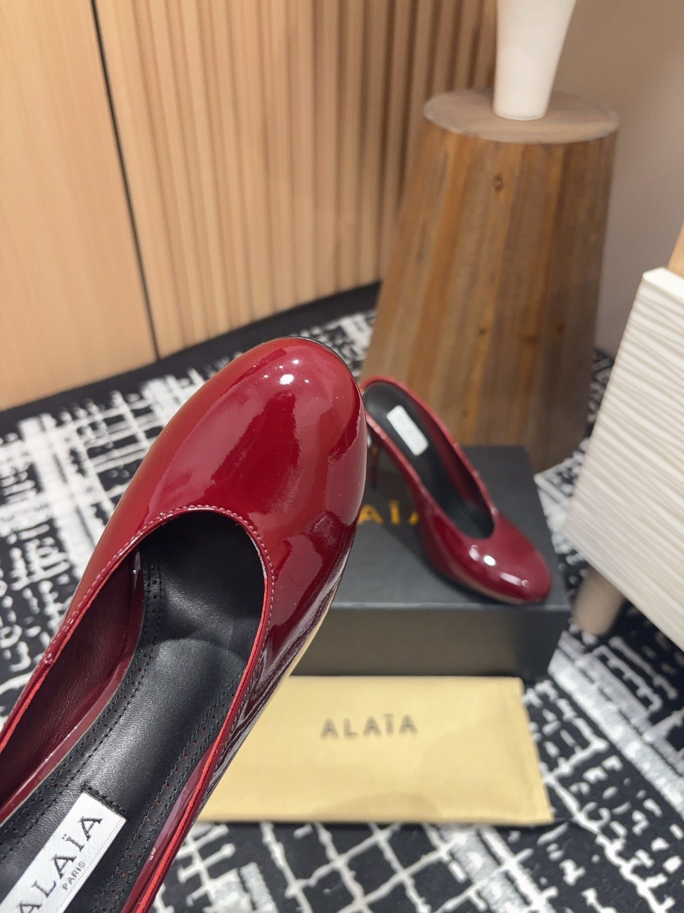 HIGH-HEEL 10 CM MULES IN BERRY RED PATENT CALFSKIN
