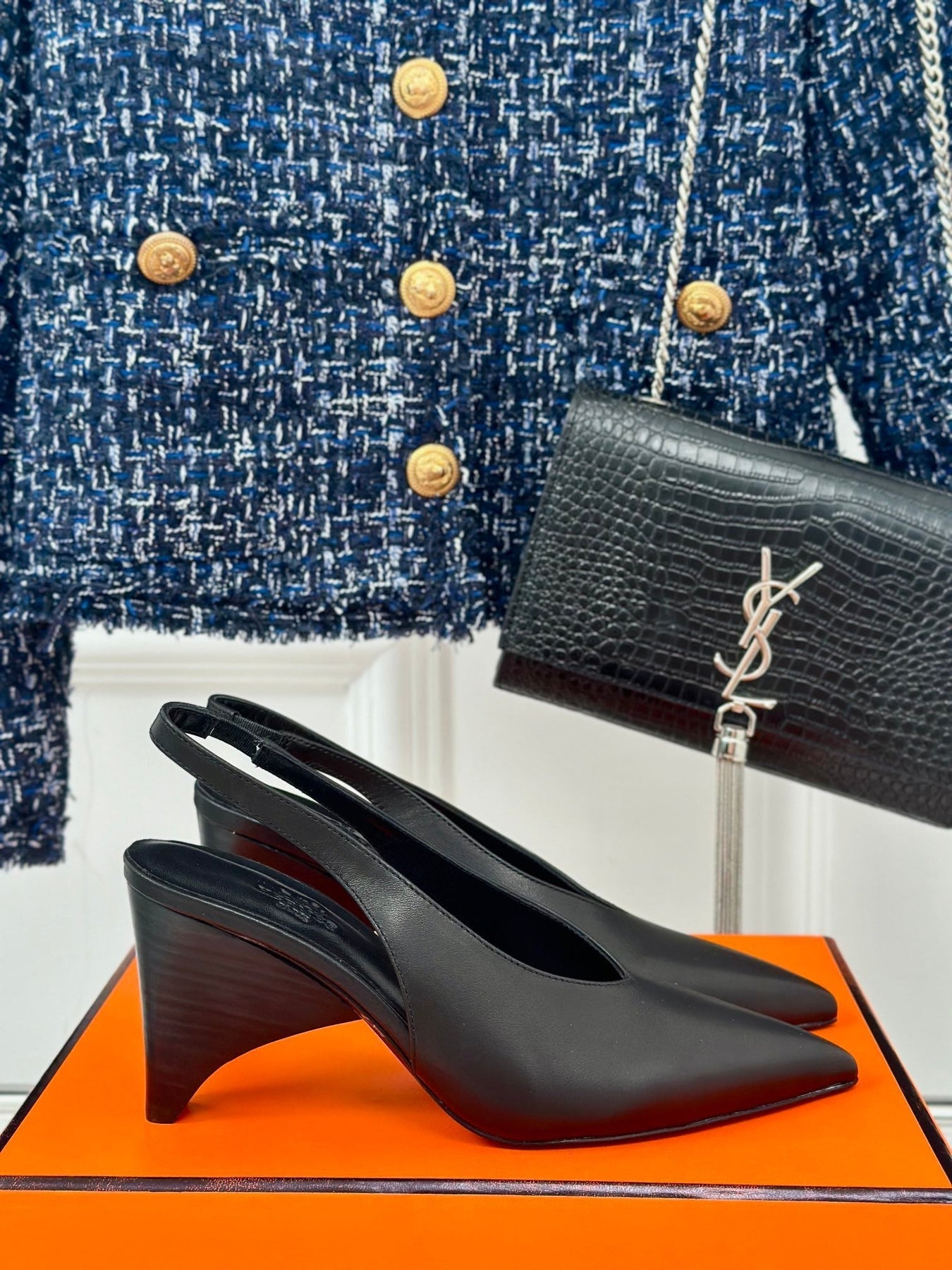 HIGH HEEL 75 MM POINTED- TOE SANDAL IN BLACK CALFSKIN